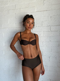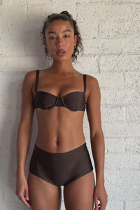 This underwire top has thicker more supportive straps like Lola which means she's great for all cup sizes. Her balconet sheered cups give an elevated more trendy look.